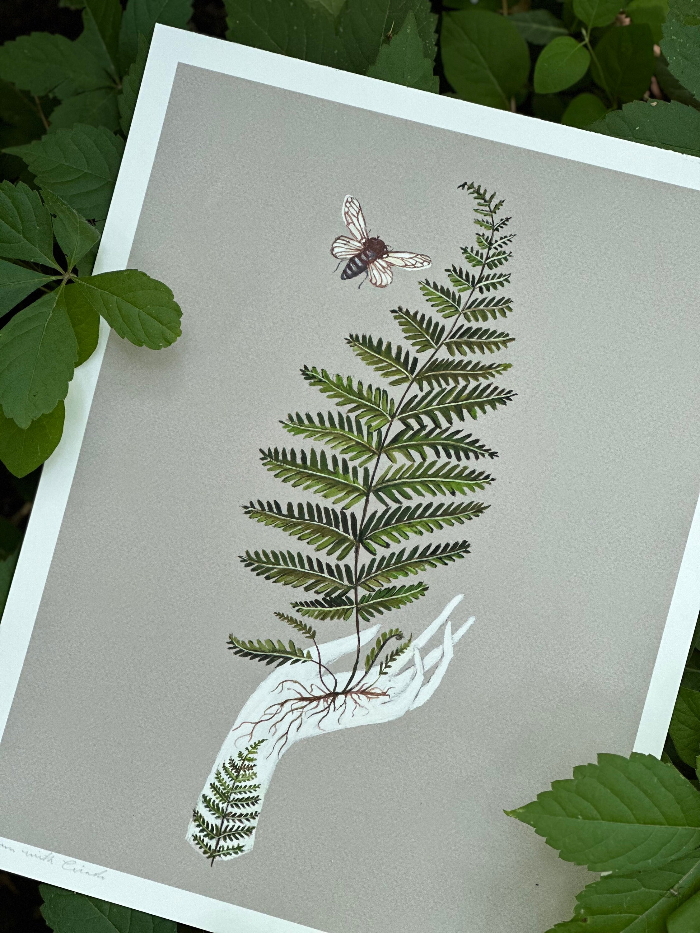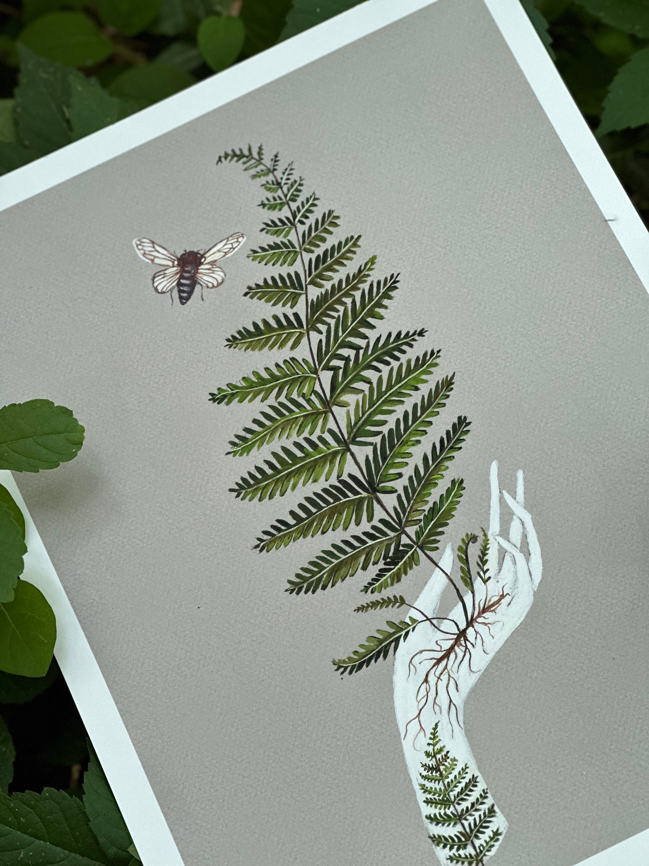 A print of the original painting, Fern with Cicada.