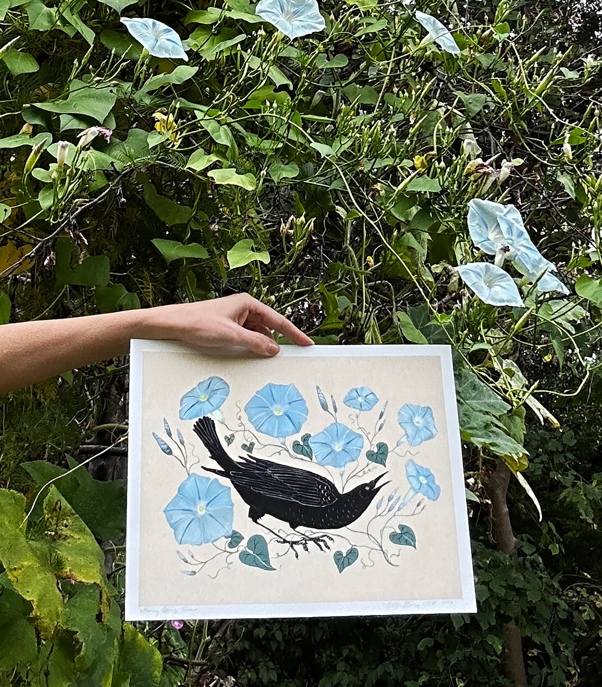 A print of the original painting, Morning Glory Crow.