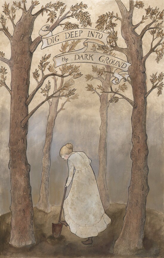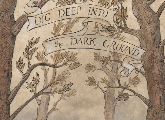 A print of the original illustration "Dig Deep Into the Dark Ground".