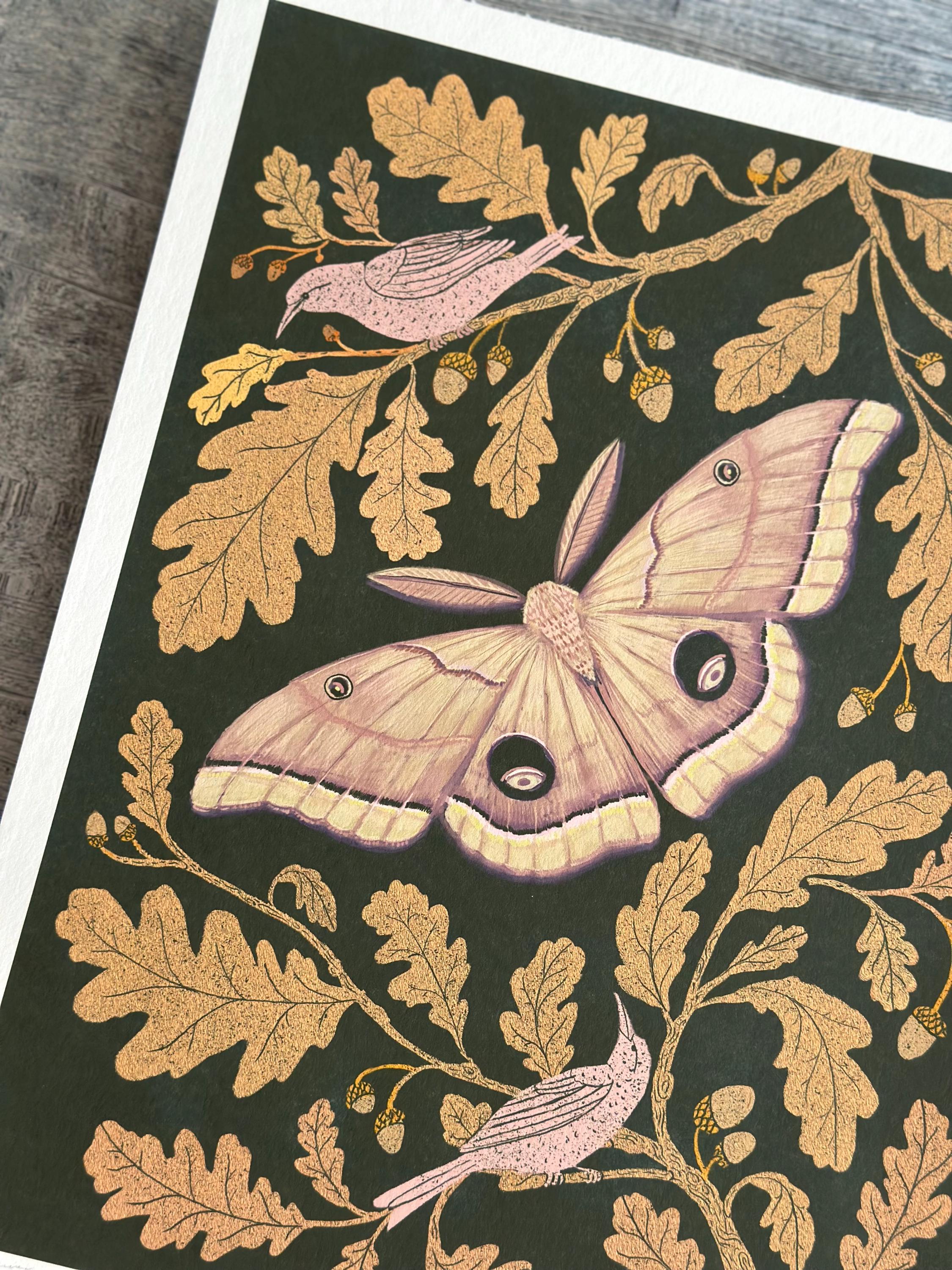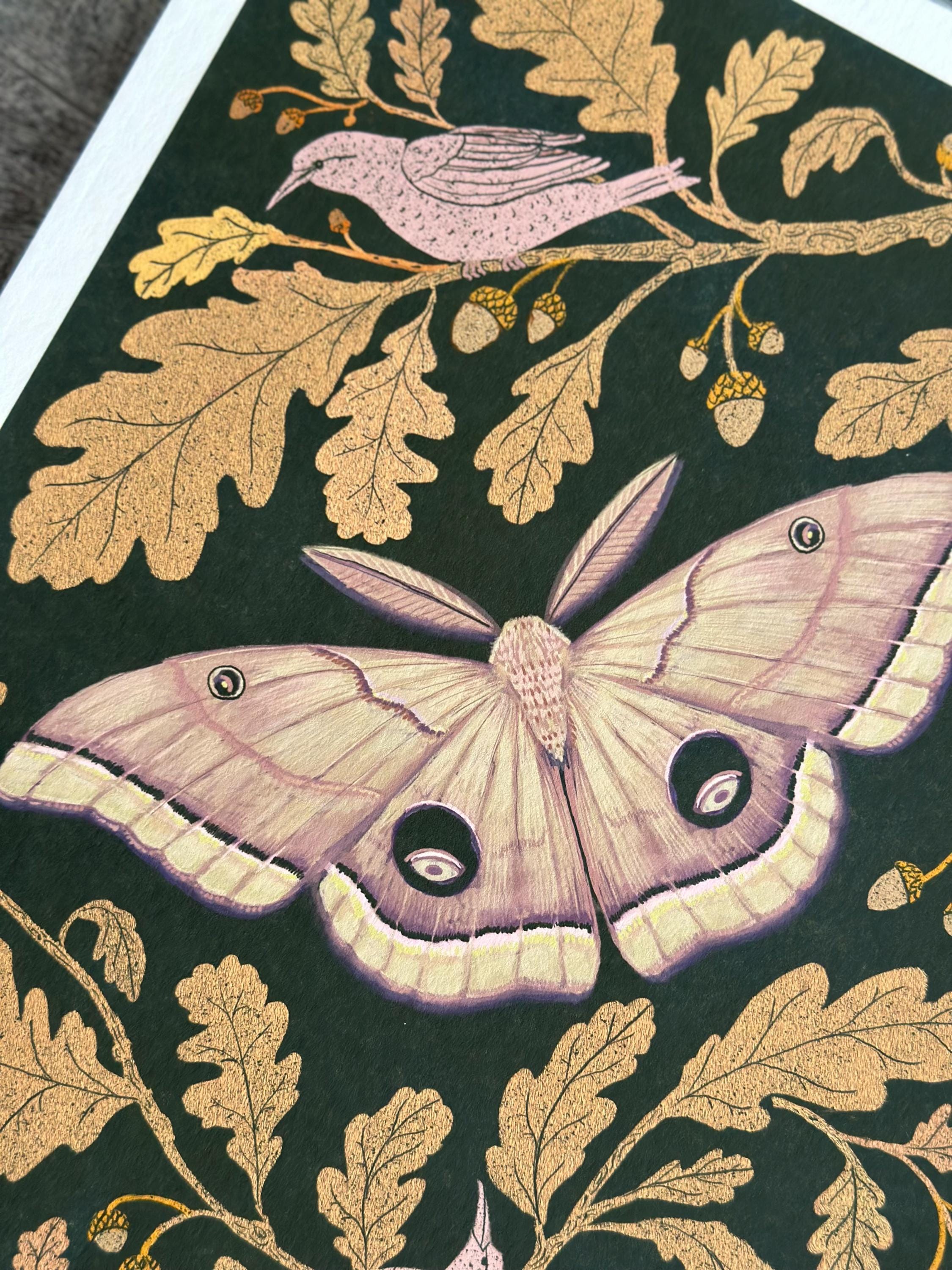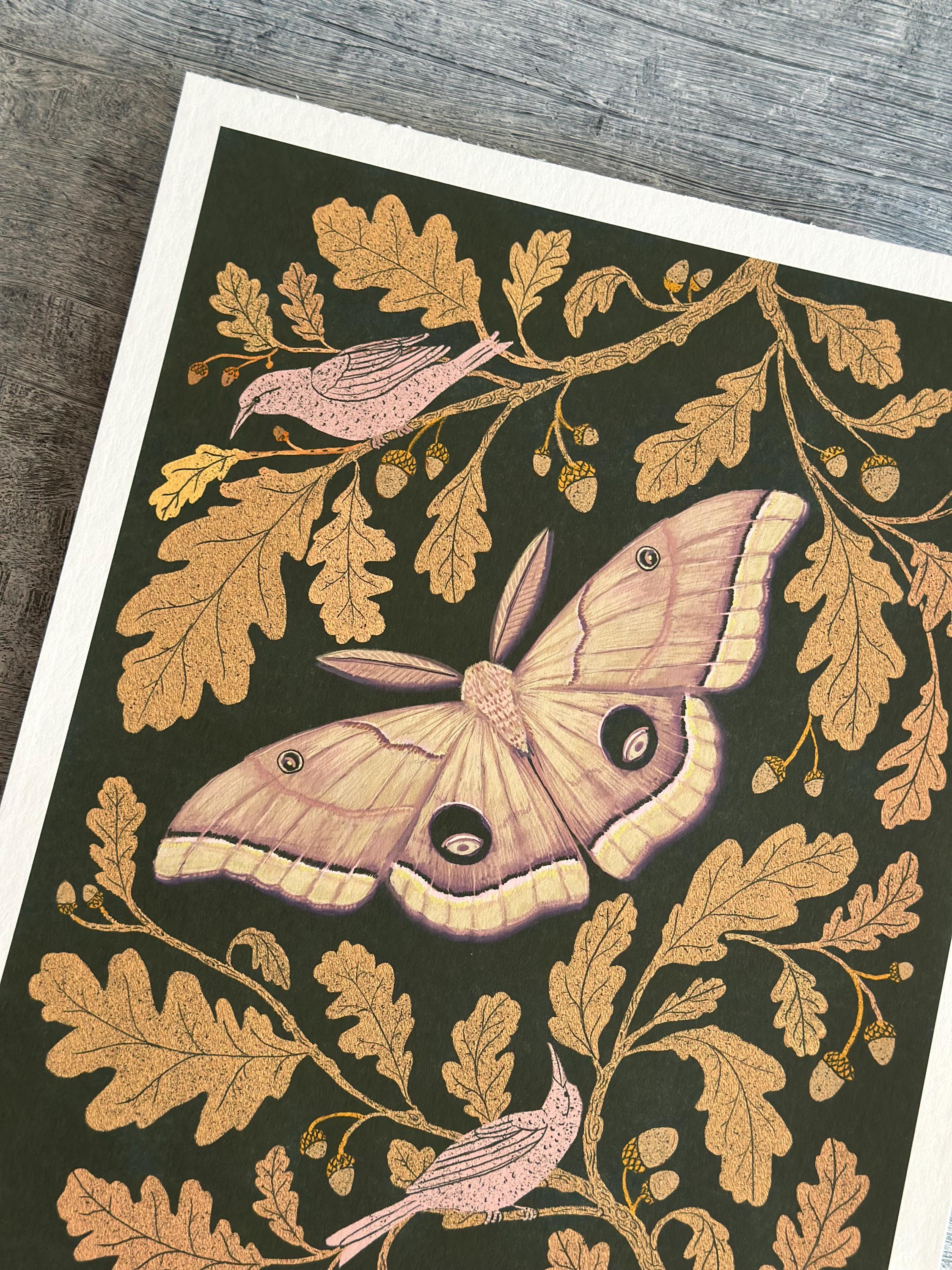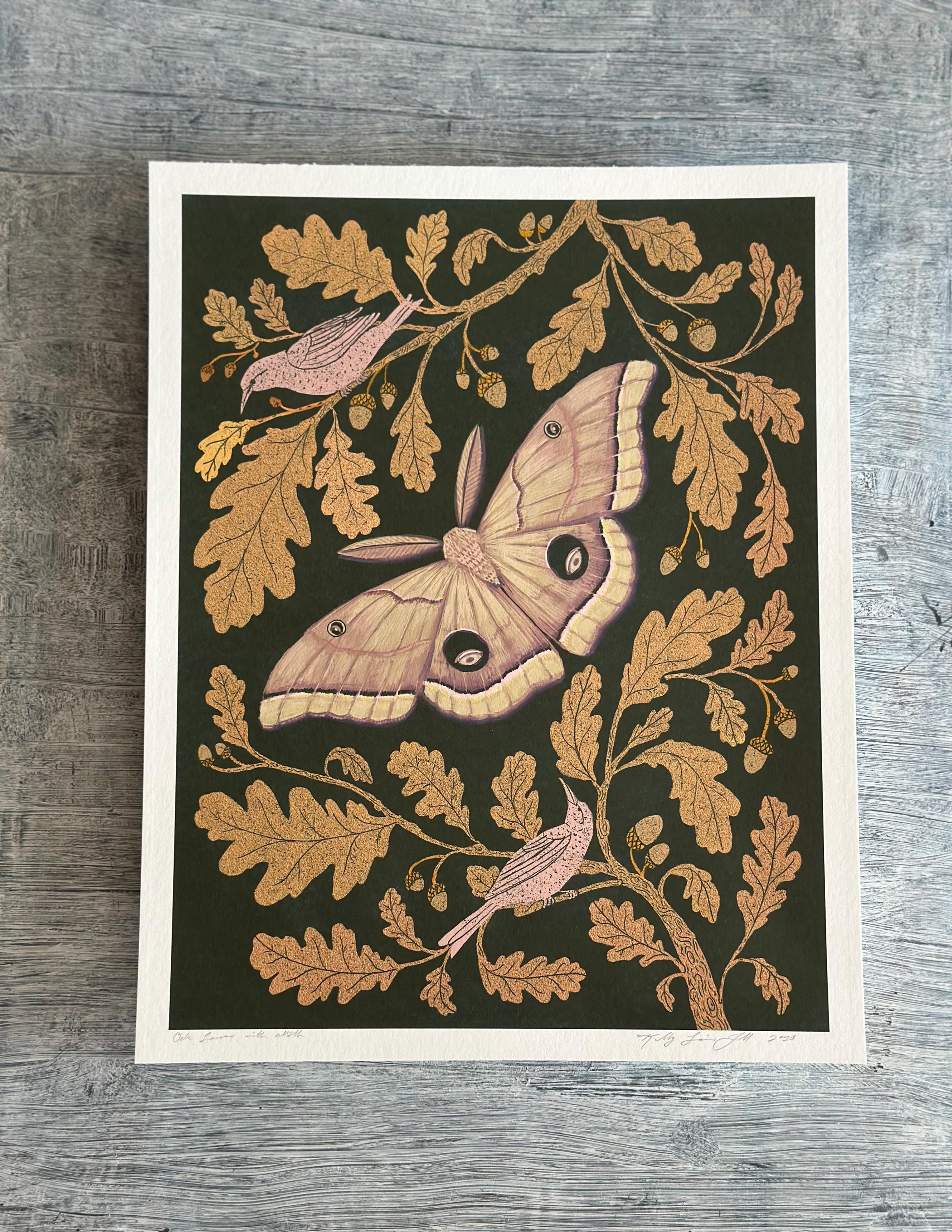 A print of the original painting, Oak Leaves with Moth.
