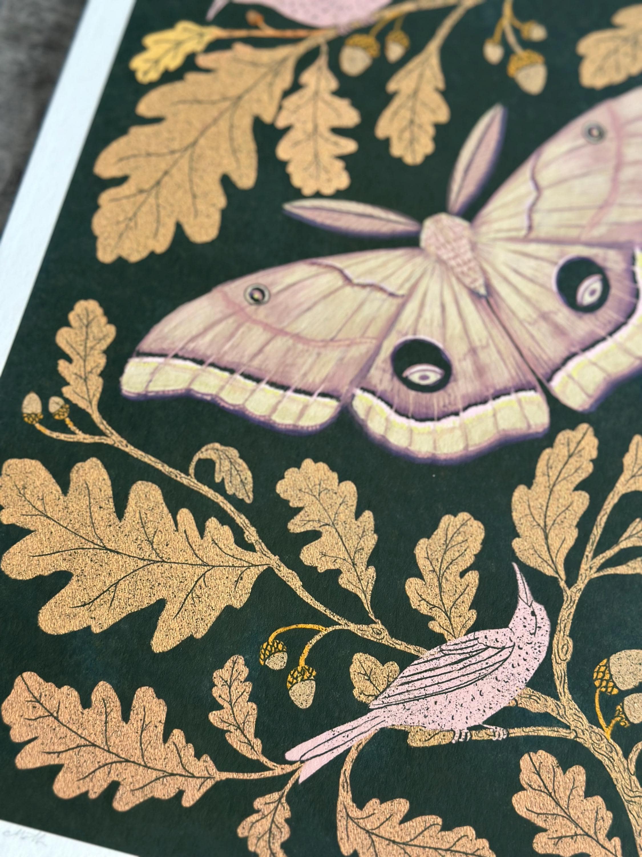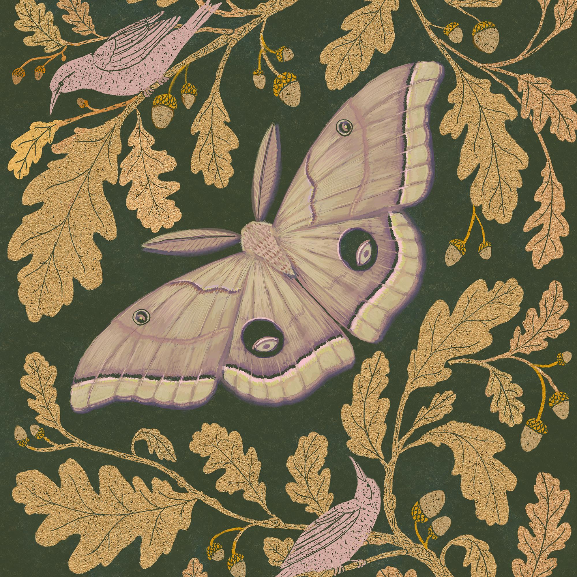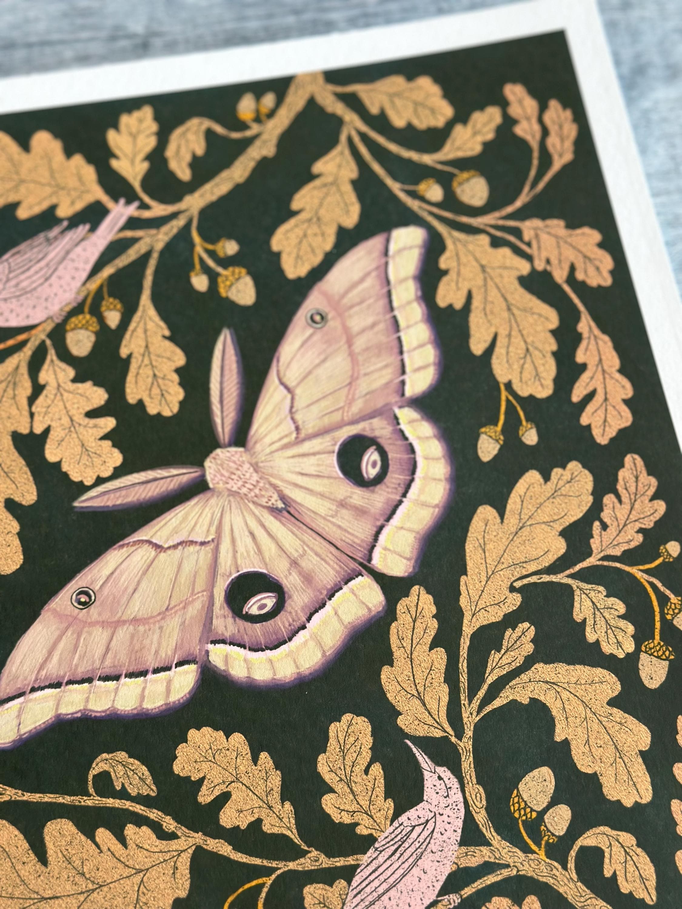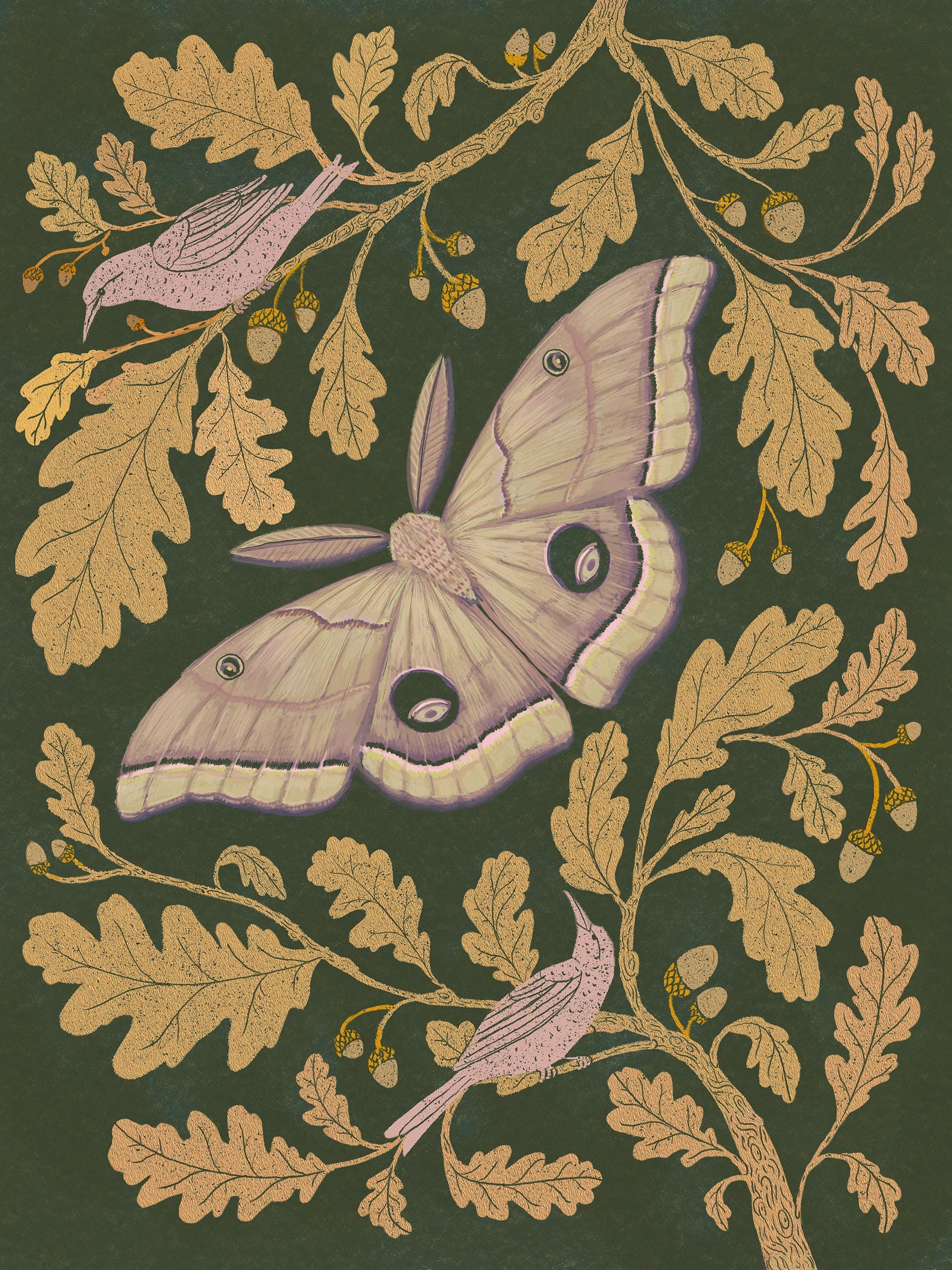A print of the original painting, Oak Leaves with Moth.