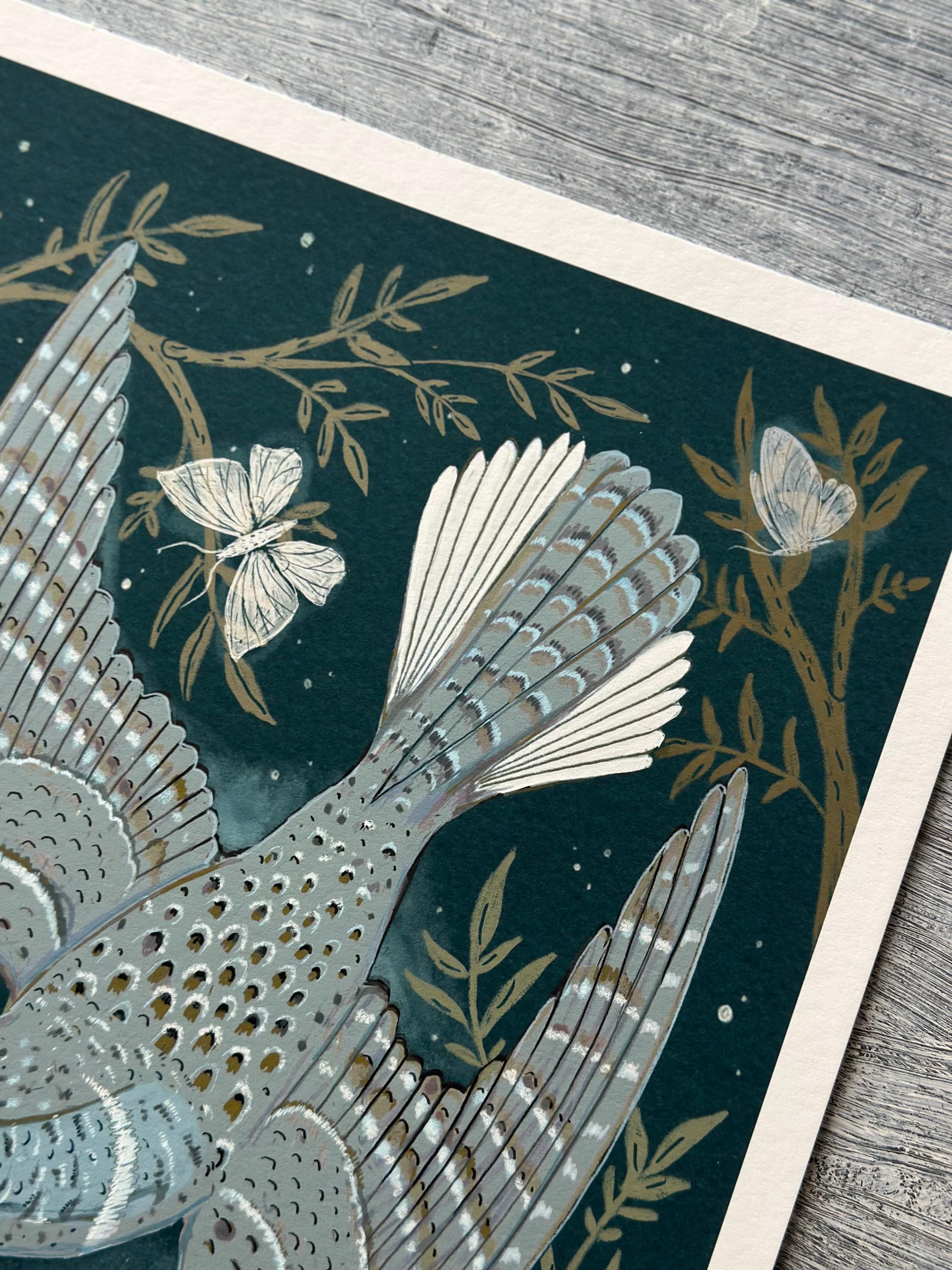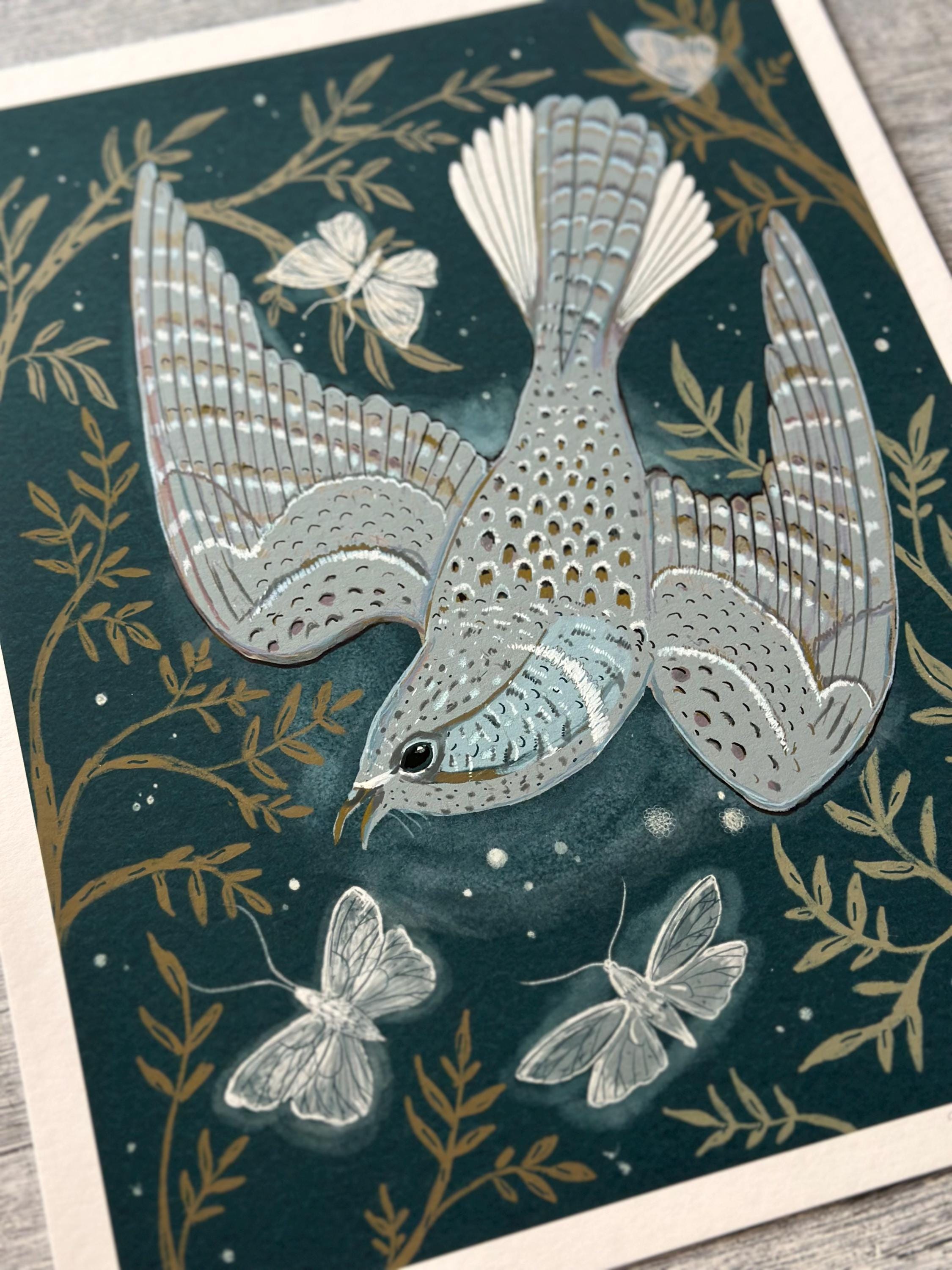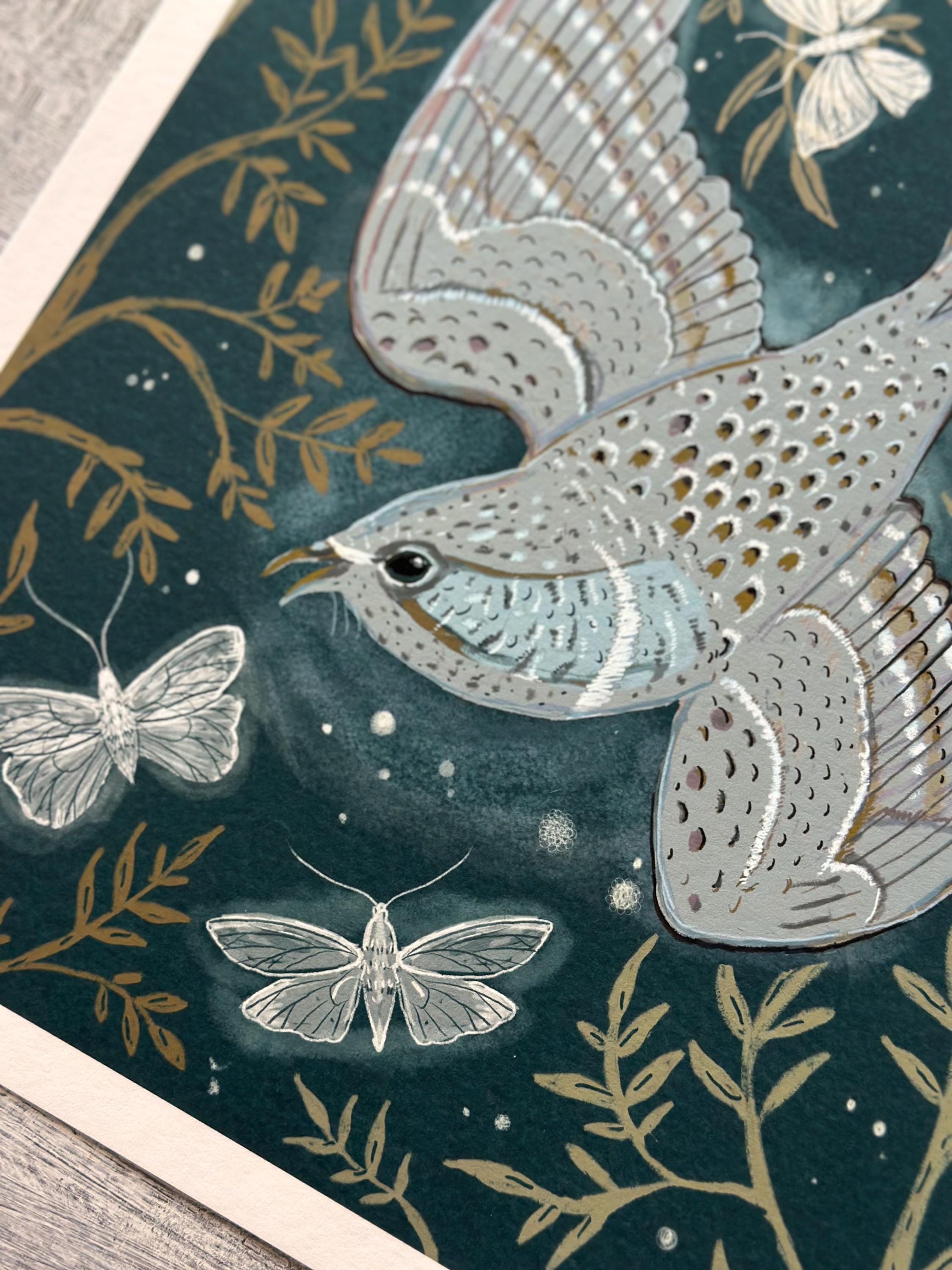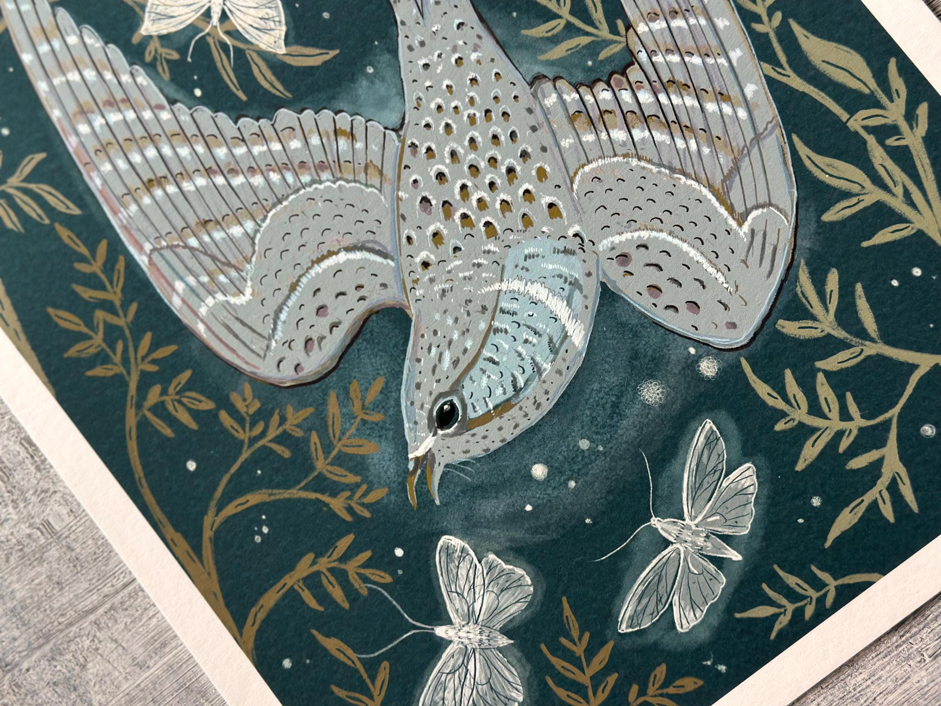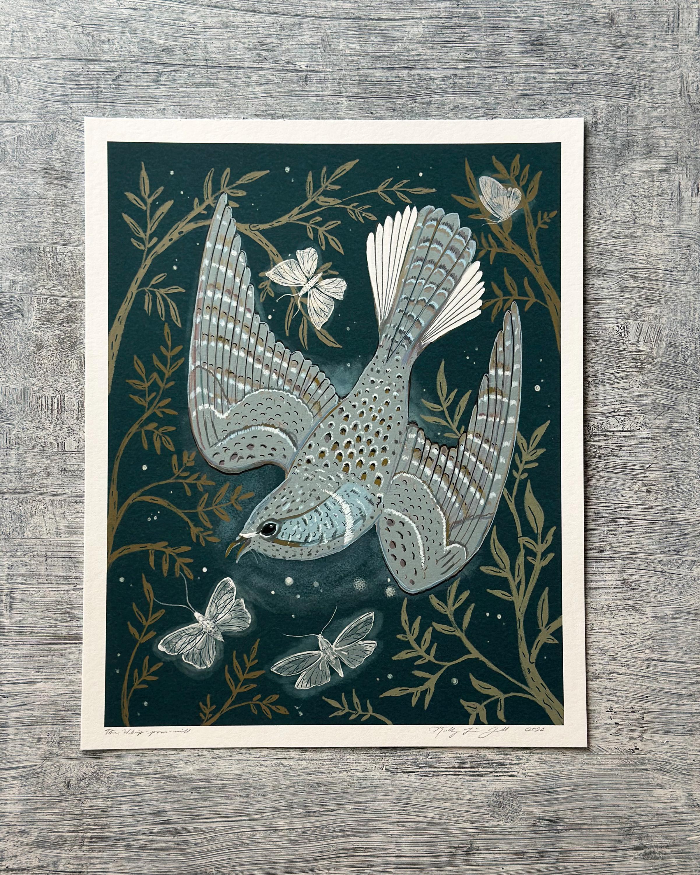 A print of the original illustration "The Whip-poor-will".Available in 8 1/2" x 11" and 11" x 14" sizes.Printed on heavy weight 100% cotton, acid free, natural white paper. Titled, signed and dated on the front