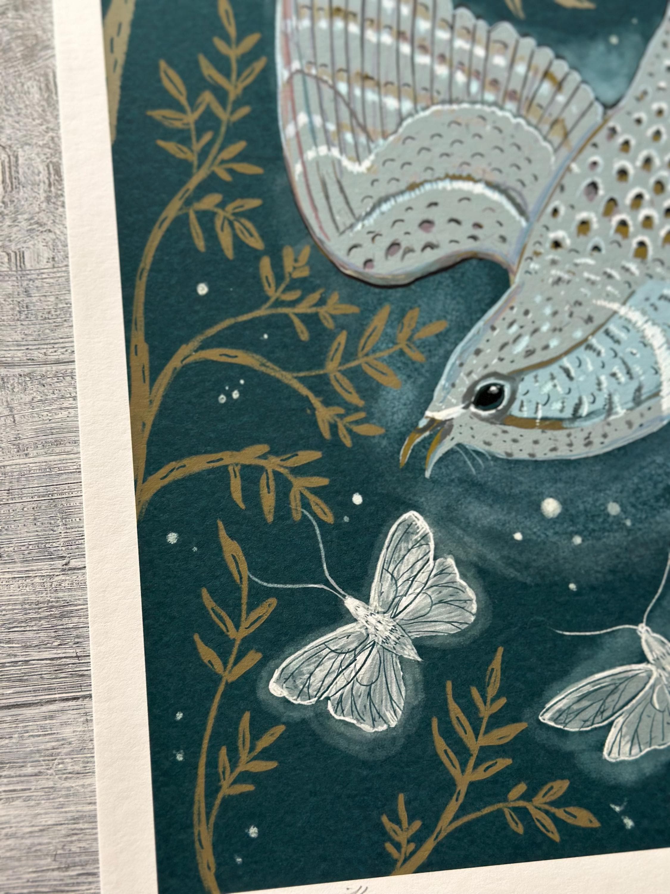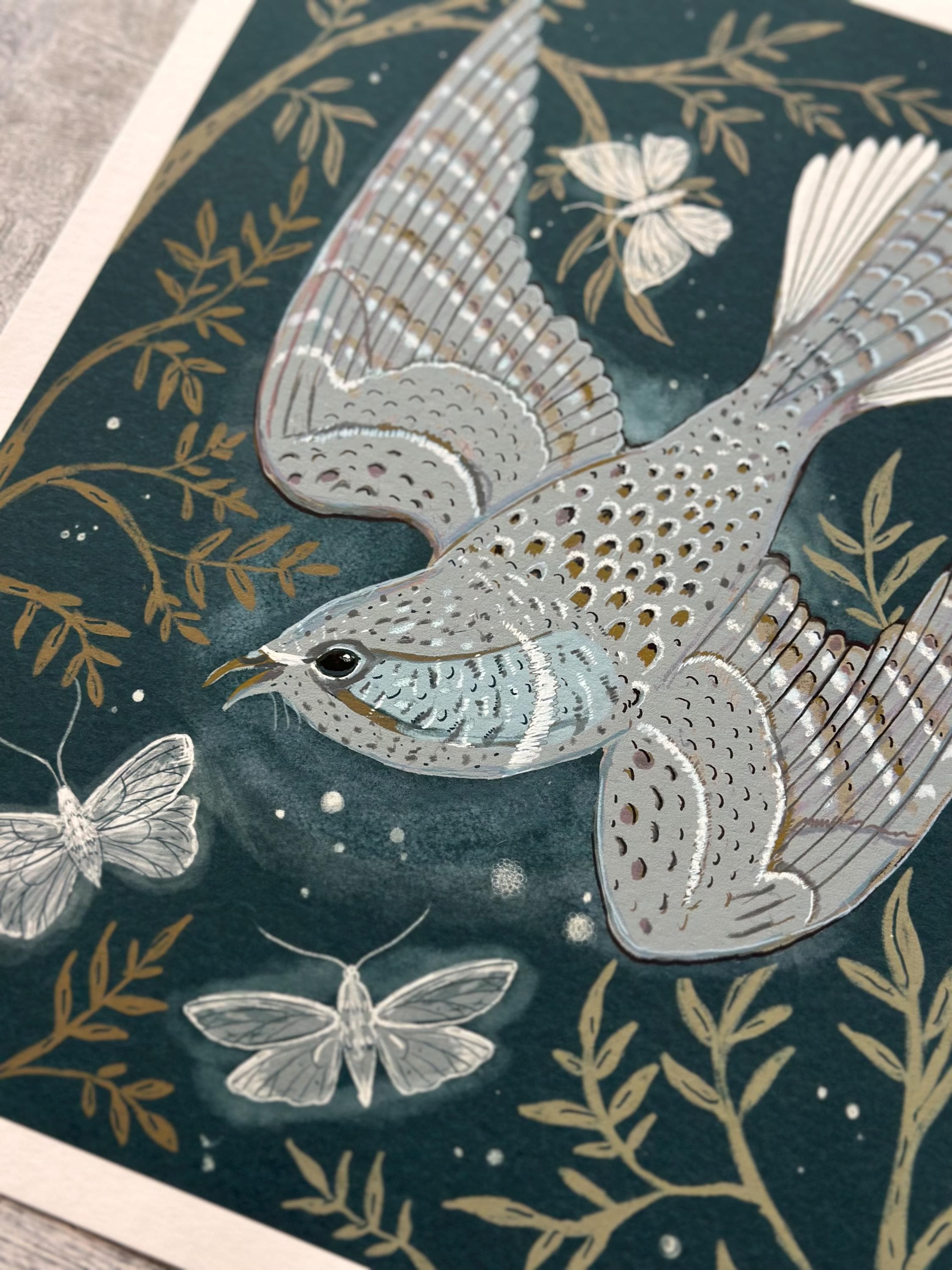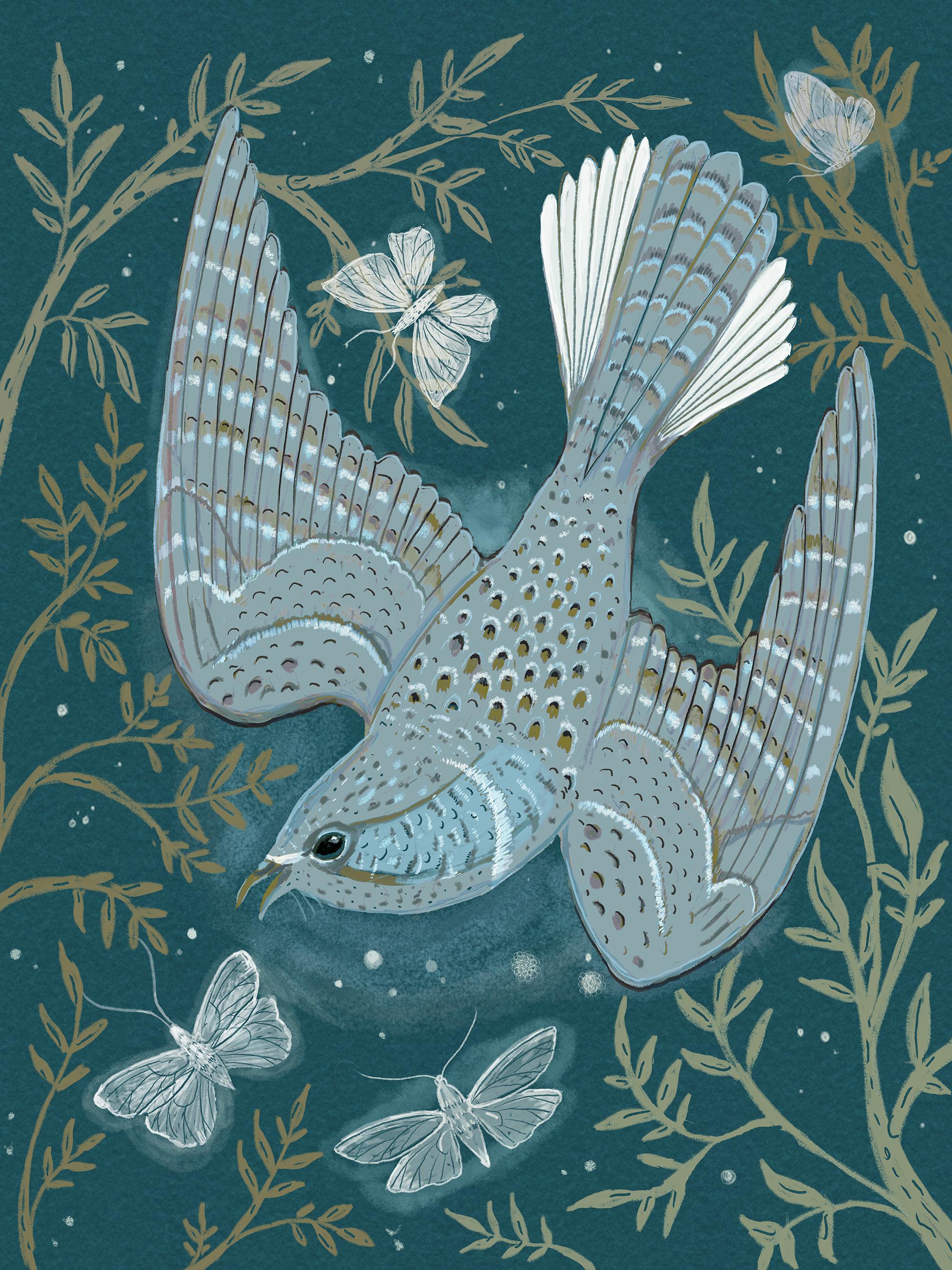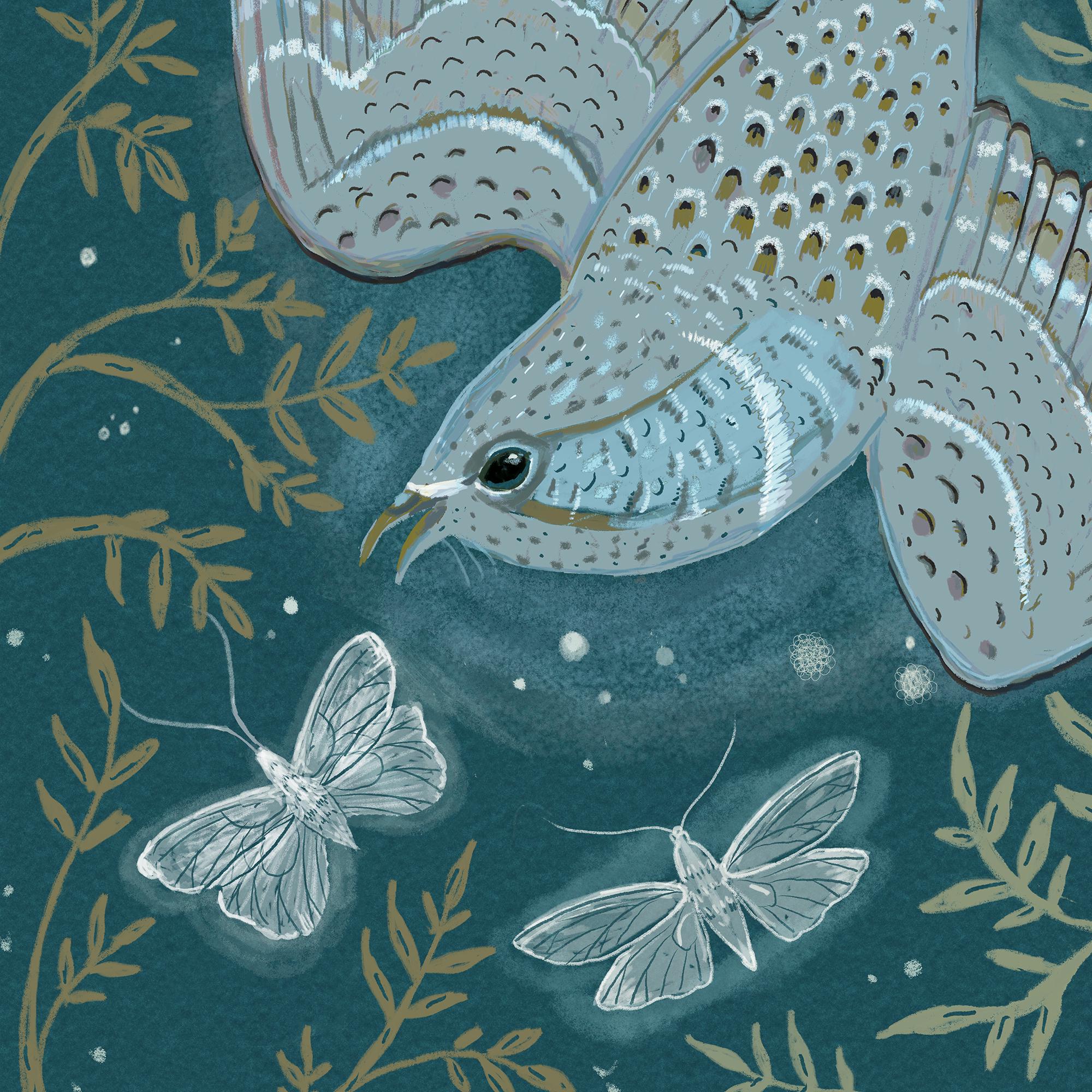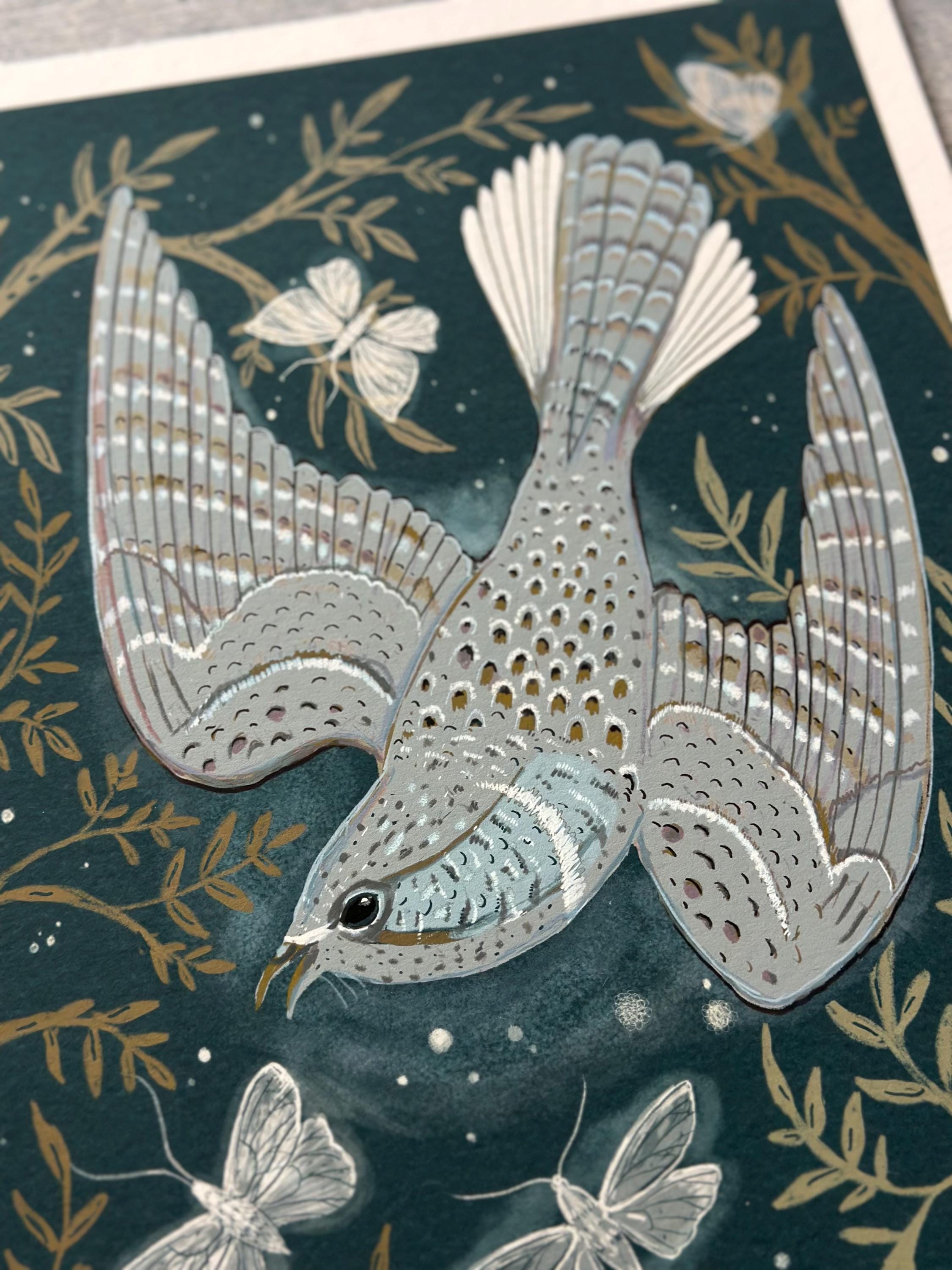 A print of the original illustration "The Whip-poor-will".Available in 8 1/2" x 11" and 11" x 14" sizes.Printed on heavy weight 100% cotton, acid free, natural white paper. Titled, signed and dated on the front
