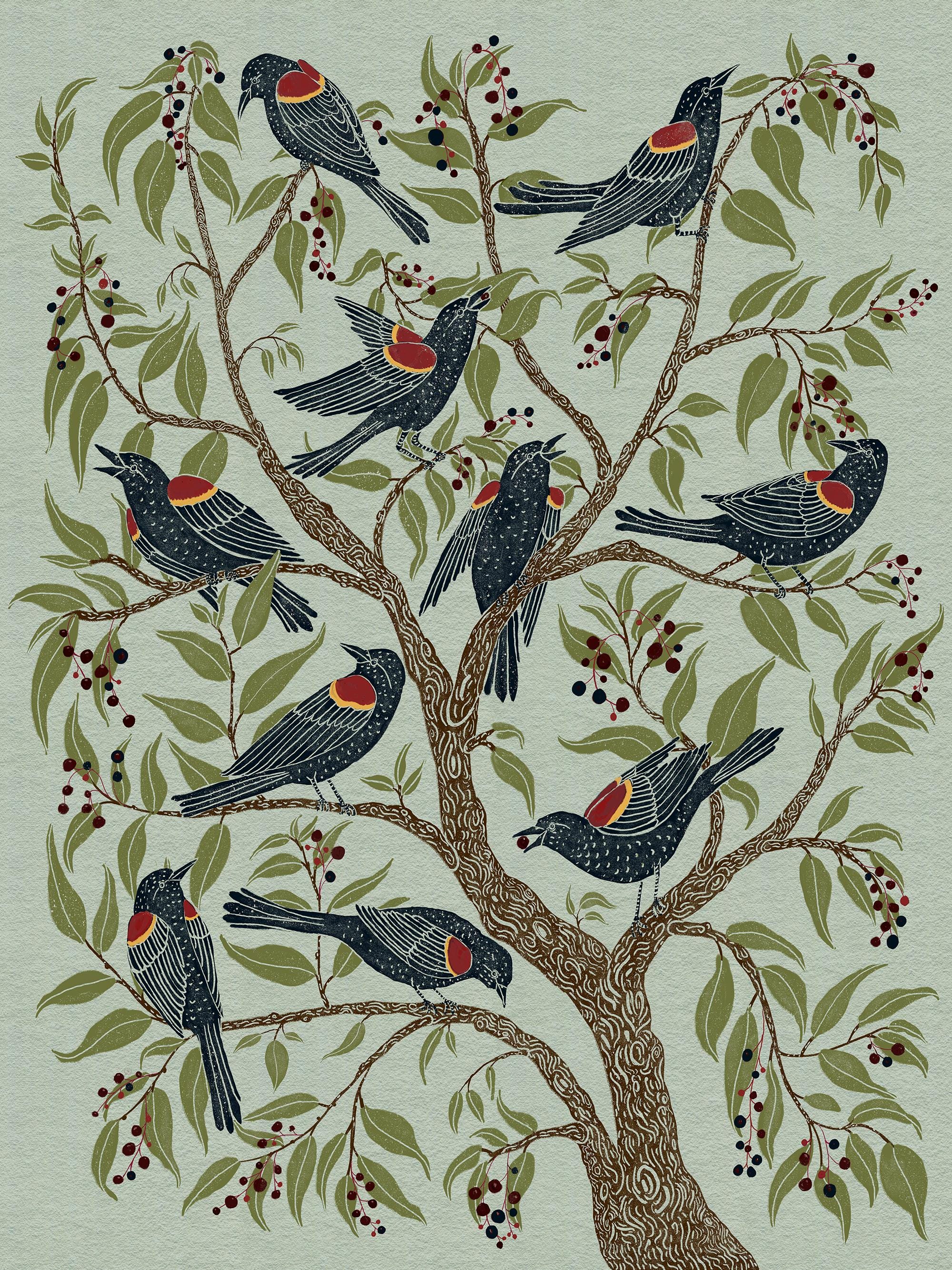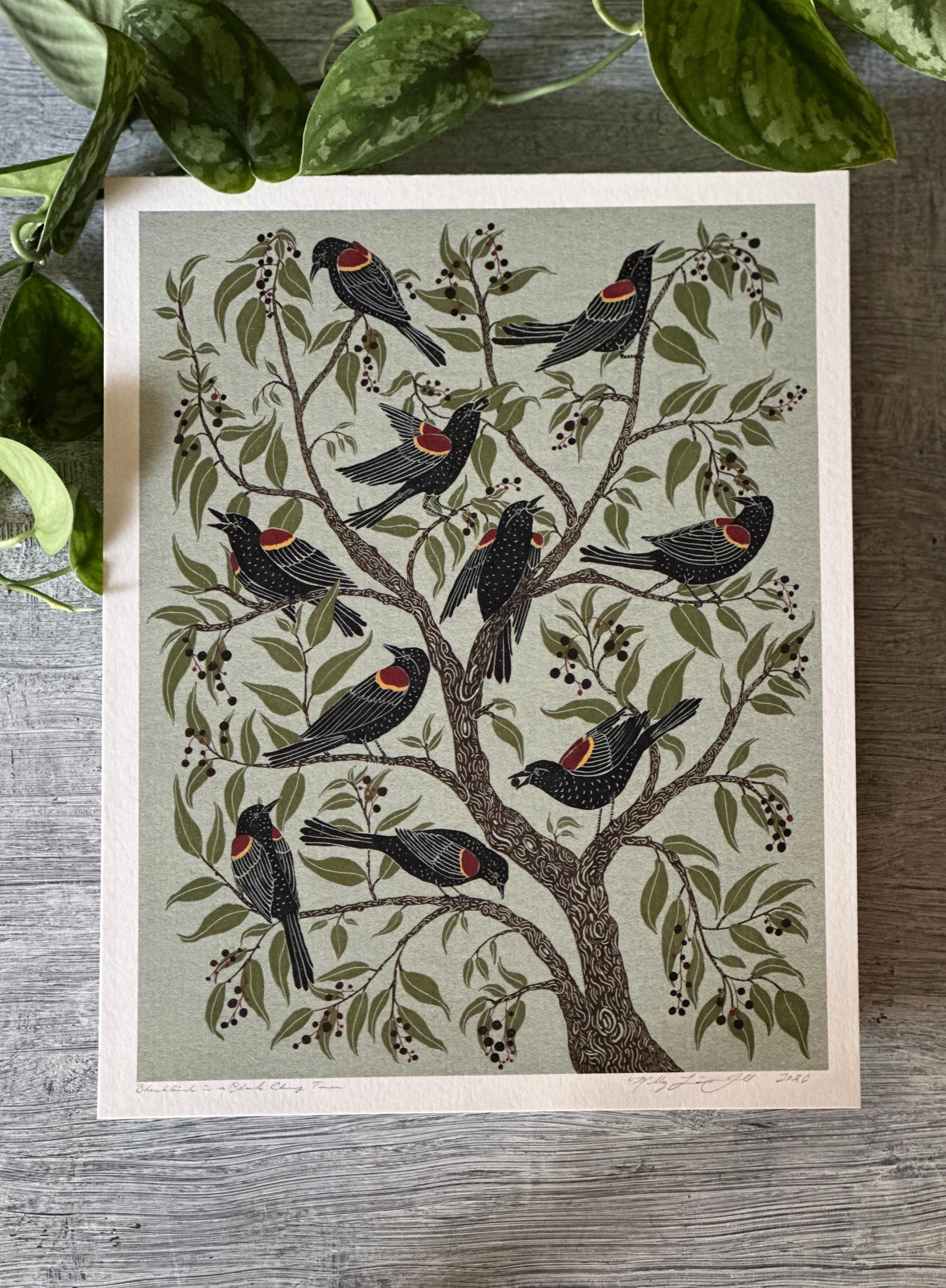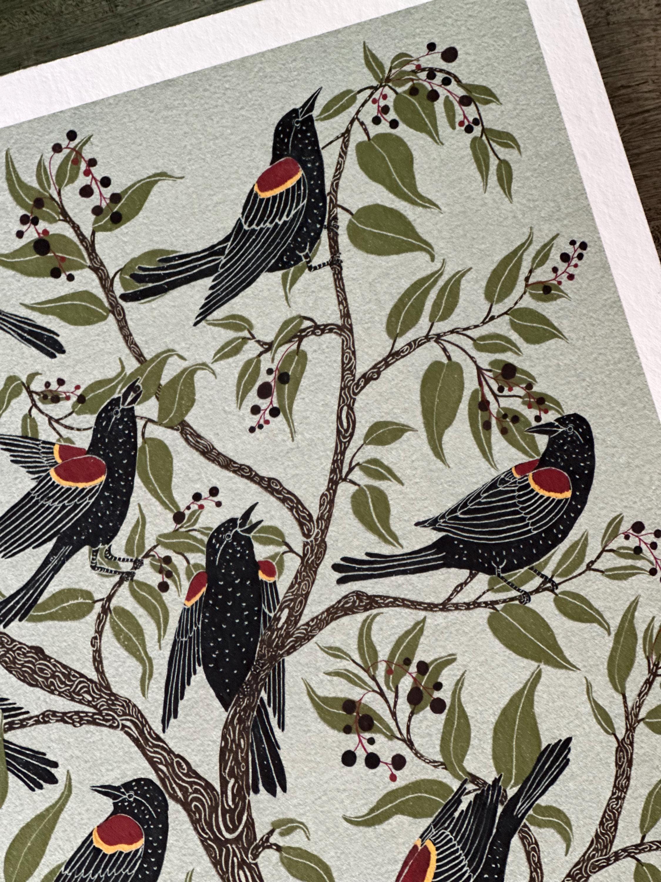 A print of the original illustration "Blackbirds in the Black Cherry Tree"