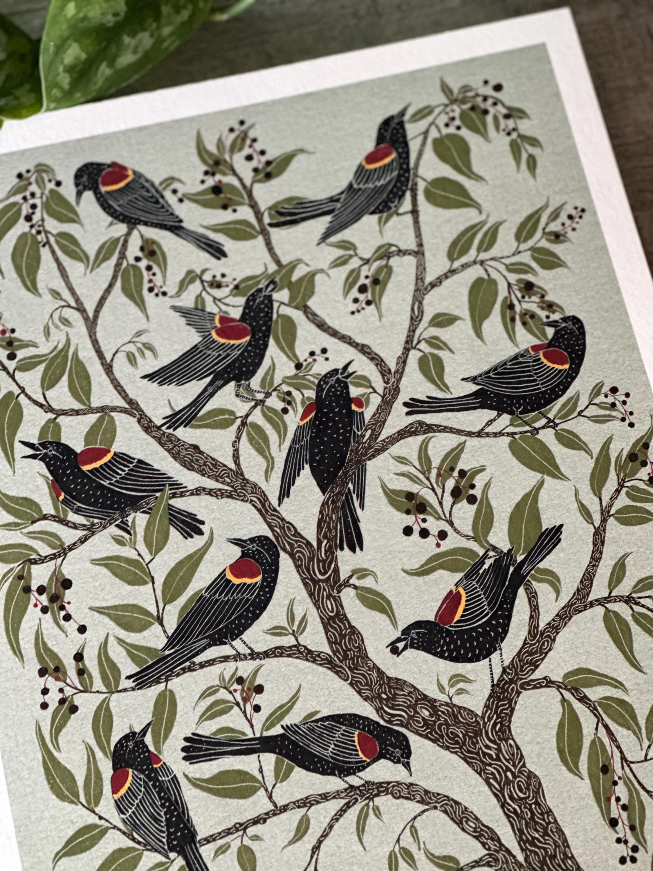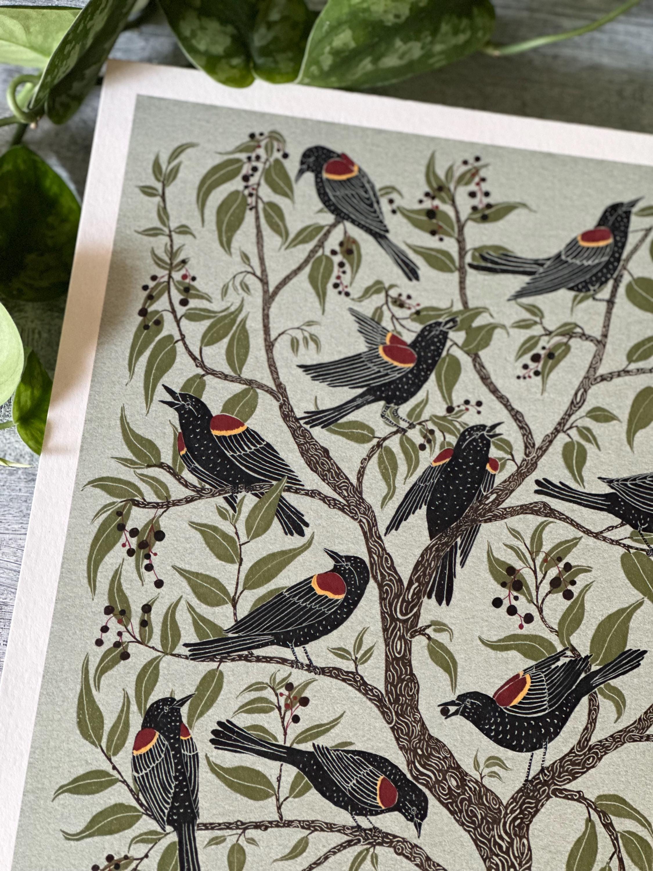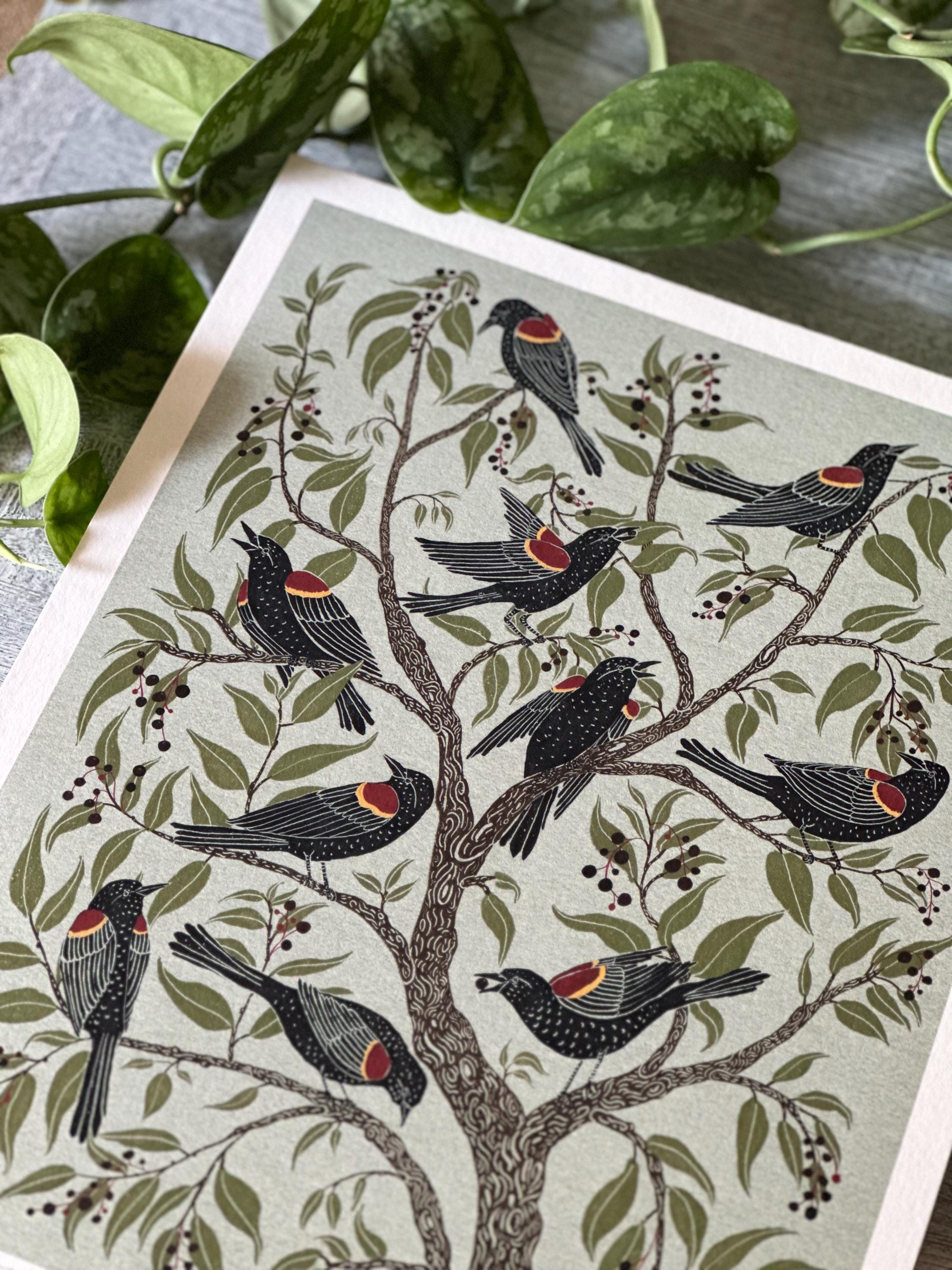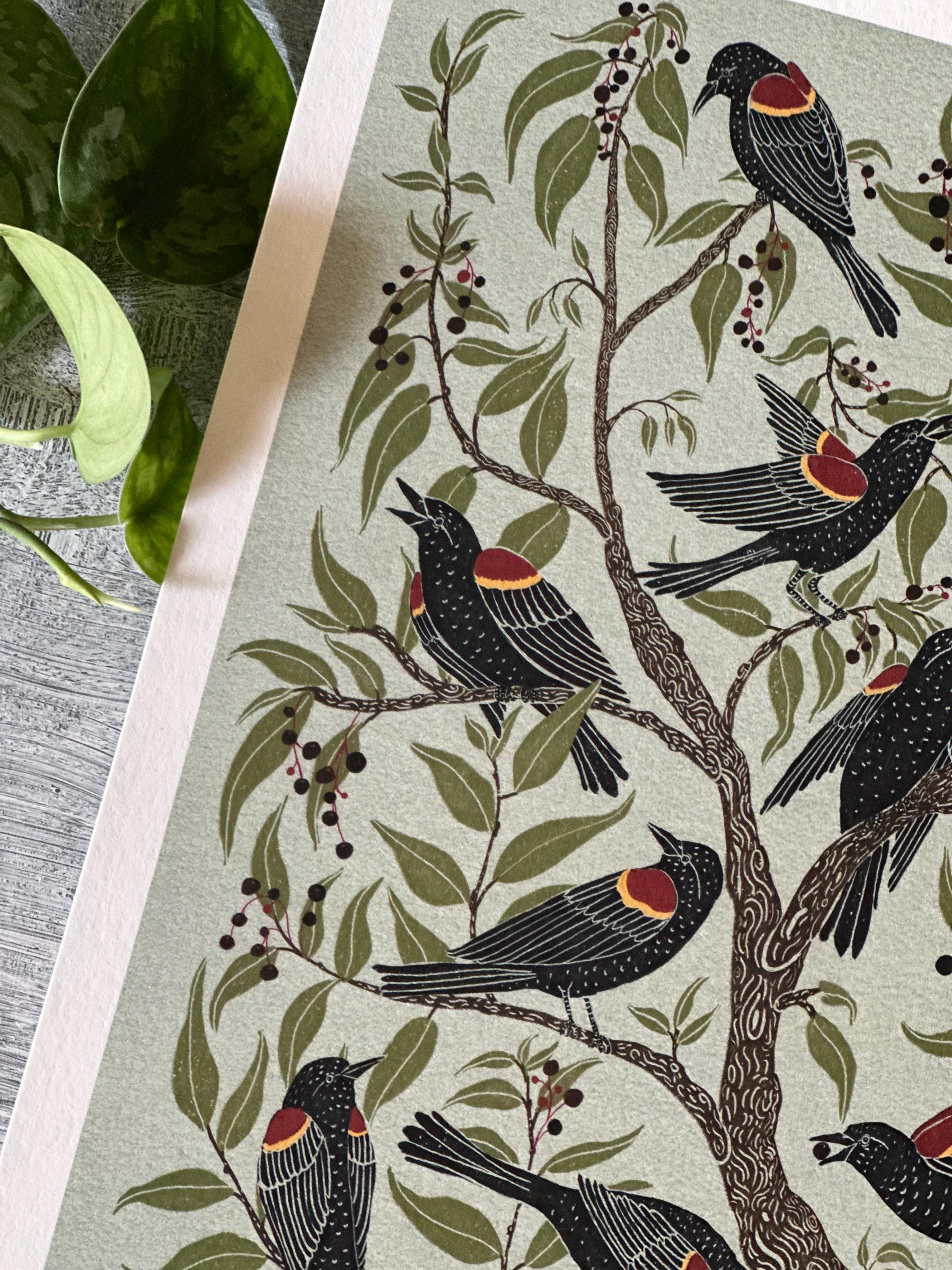 A print of the original illustration "Blackbirds in the Black Cherry Tree"