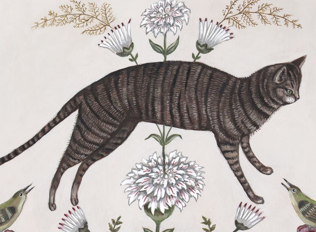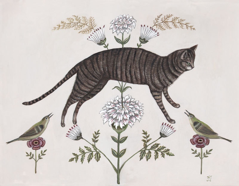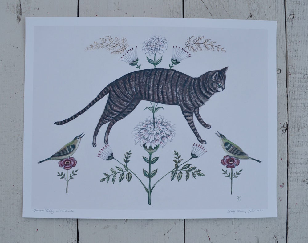 A print of the original painting "Brown Tabby with Birds"Available in 8 1/2" x 11" and 11" x 14" sizes.Printed on heavy weight 100% cotton, acid free, natural white paper. Titled, signed, and dated on the front