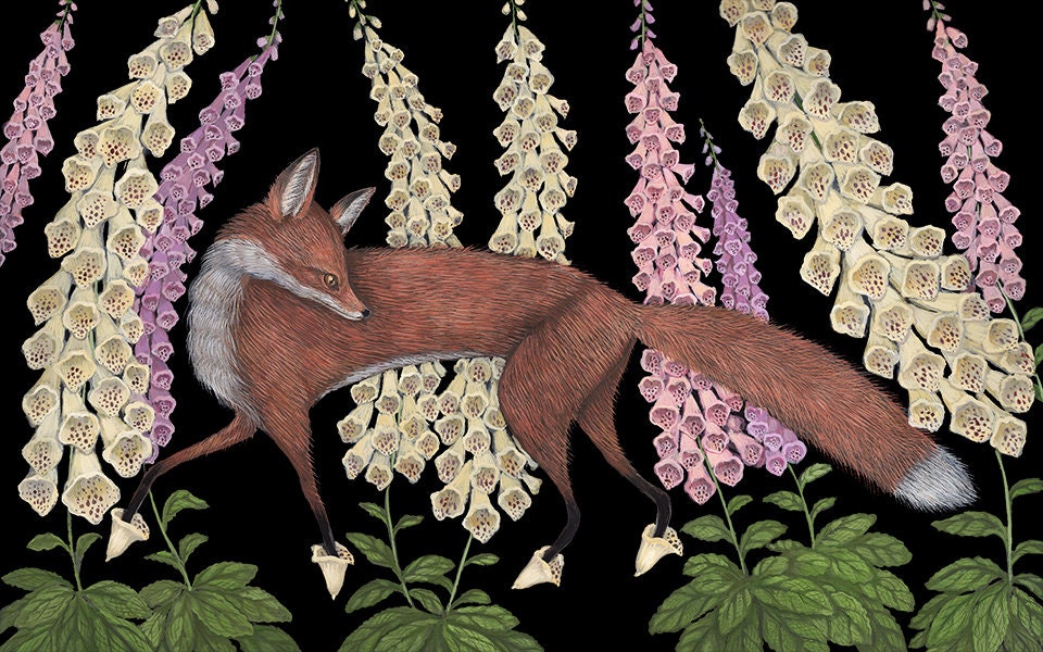 A print of the original painting "Foxgloves" (2018 version)11" x 17" with a 1/2" white borderPrinted on heavy weight 100% cotton, acid free, natural white paper. Signed,titled, and dated on the front