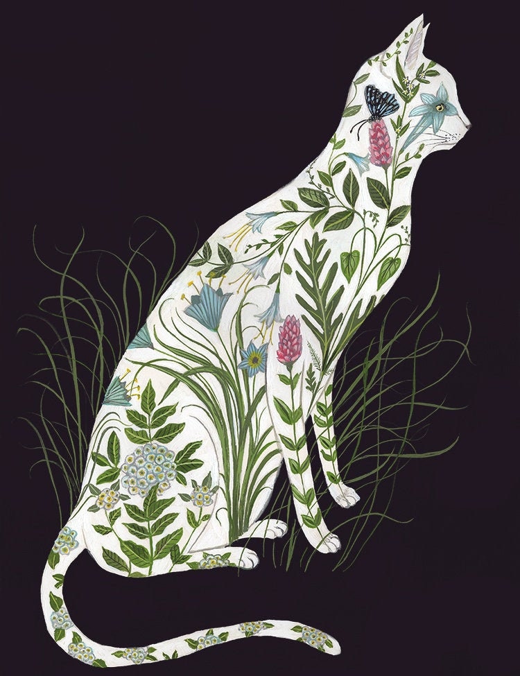 A print of the original painting "Botanical Cat"Available in 8 1/2" x 11" and 11" x 14" sizesPrinted on heavy weight 100% cotton, acid free, natural white paper. Signed and dated on the front