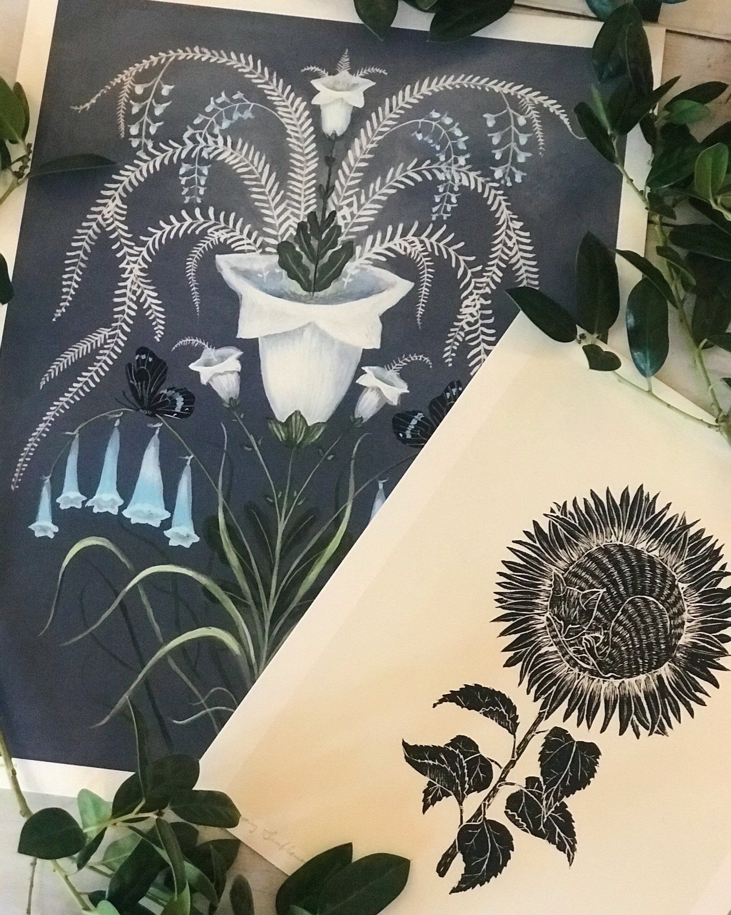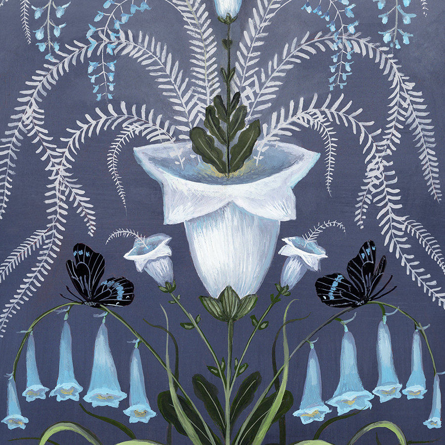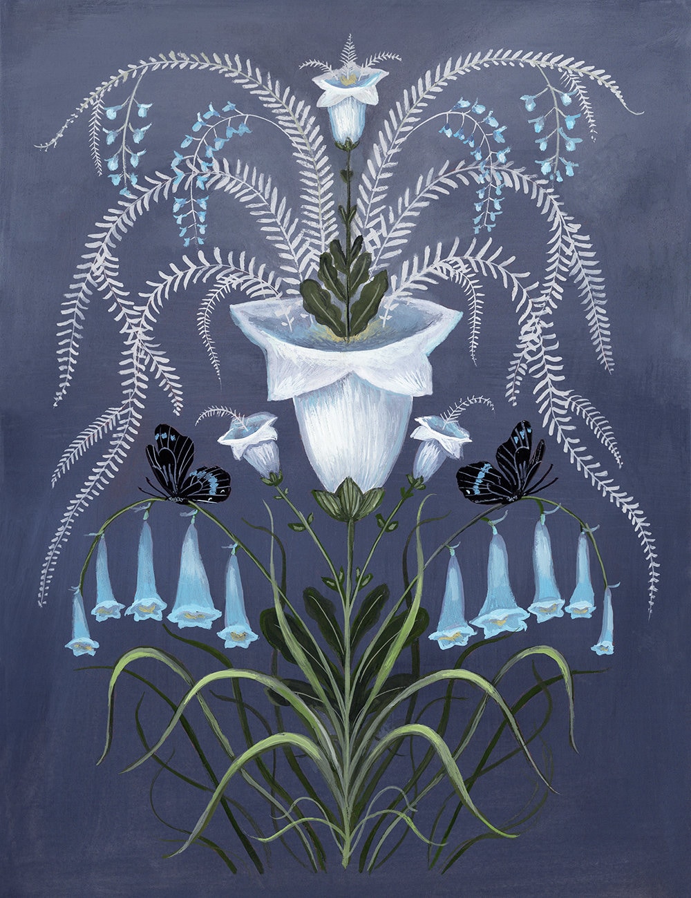 A print of the original painting "The Bellflower"Available in 8 1/2" x 11" and 11" x 14" sizesPrinted on heavy weight 100% cotton, acid free, natural white paper. Signed and dated on the front